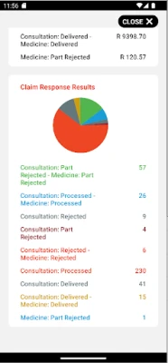 The financial overview also expands into the claimed items at line level giving an immediate insight into where Patient Liable deficits remain with clear line level Administrator rejections or warning response messages.