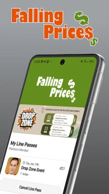The Falling Prices app is the way to get priority entrance at opening time for each Falling Prices location as well as access to our Live Drop Zone (In-store) and our Virtual Drop Zone experience--now with an added video feature for certain producrs. You can also stay up to date with special announcements, Drop Zone Event news, and exclusive offers.
