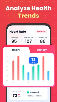 Heart Rate: Heart Rate Monitor is designed to help you measure your heart rate accurately and quickly in just a few seconds. You can measure your heart rate without professional equipment, view history charts, save data to the cloud, and even send data to doctors.