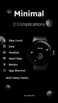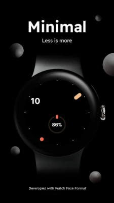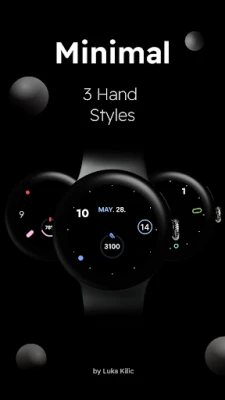 The watch face offers a very minimalistic and modern design for Wear OS. It replaces the hour hand by only showing the current hour in the index of the watch.