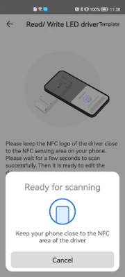 Keep your phone close to the NFC driver to read the data, and set the output current, parameters or advanced template depending on your needs, then save them. Get your phone close to the NFC driver again to write them into the driver.