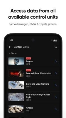 - Advanced diagnostics: Scan all available control units, diagnose issues, clear minor faults, and share trouble codes.