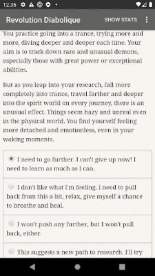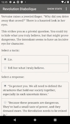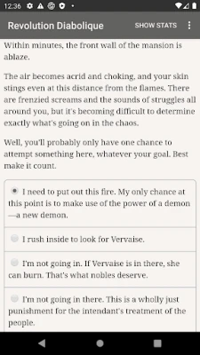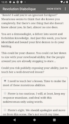 "Revolution Diabolique" is a 425,000-word interactive dark fantasy novel by Chris Conley. It's entirely text-based, without graphics or sound effects, and fueled by the vast, unstoppable power of your imagination.