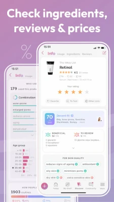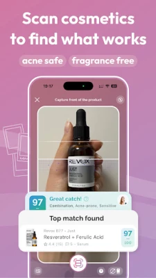 * Search a database of 150,000+ skincare products tailored to your skin concerns.